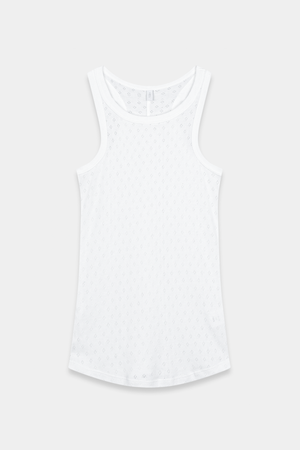 Top o dopasowanym kroju wykonany z wysokogatunkowej bawełny w kolorze białym. Subtelne ażurowe zdobienie.