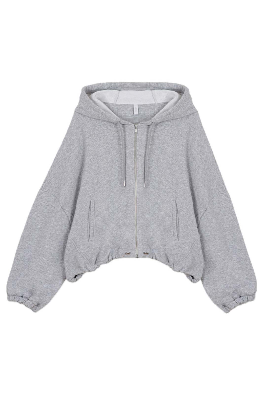 Rozpinana bluza z kapturem o oversize'owym kroju w kolorze szary melange.