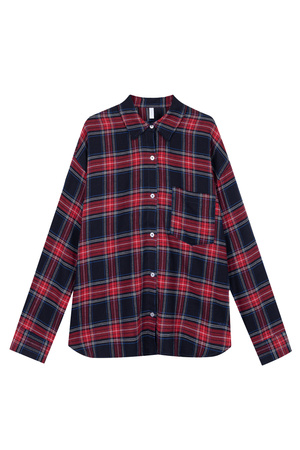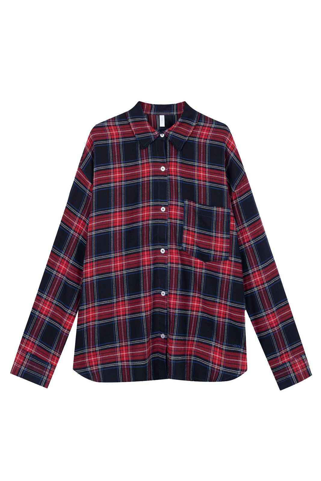 Koszula o lekko oversize'owym kroju, wykonana z wysokogatunkowej bawełny w czarno-czerwoną kratkę.