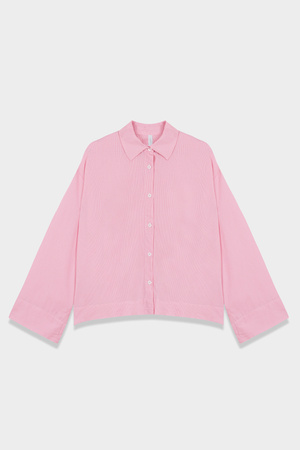 Koszula o oversize'owym kroju z szerokimi rękawami, wykonana z wysokogatunkowej bawełny w różowo-białą kratkę.