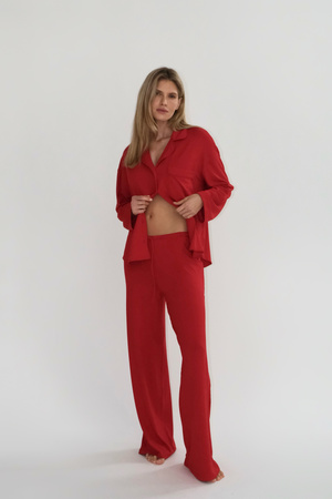 Koszula do spania o kroju oversize, wykonana z wysokogatunkowej wiskozy z domieszką elastanu w kolorze czerwonym.