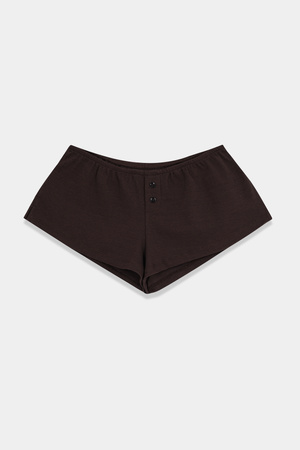 Krótkie spodenki wykonane z wysokogatunkowej, prążkowanej bawełny z domieszką elastanu w kolorze czekoladowym.