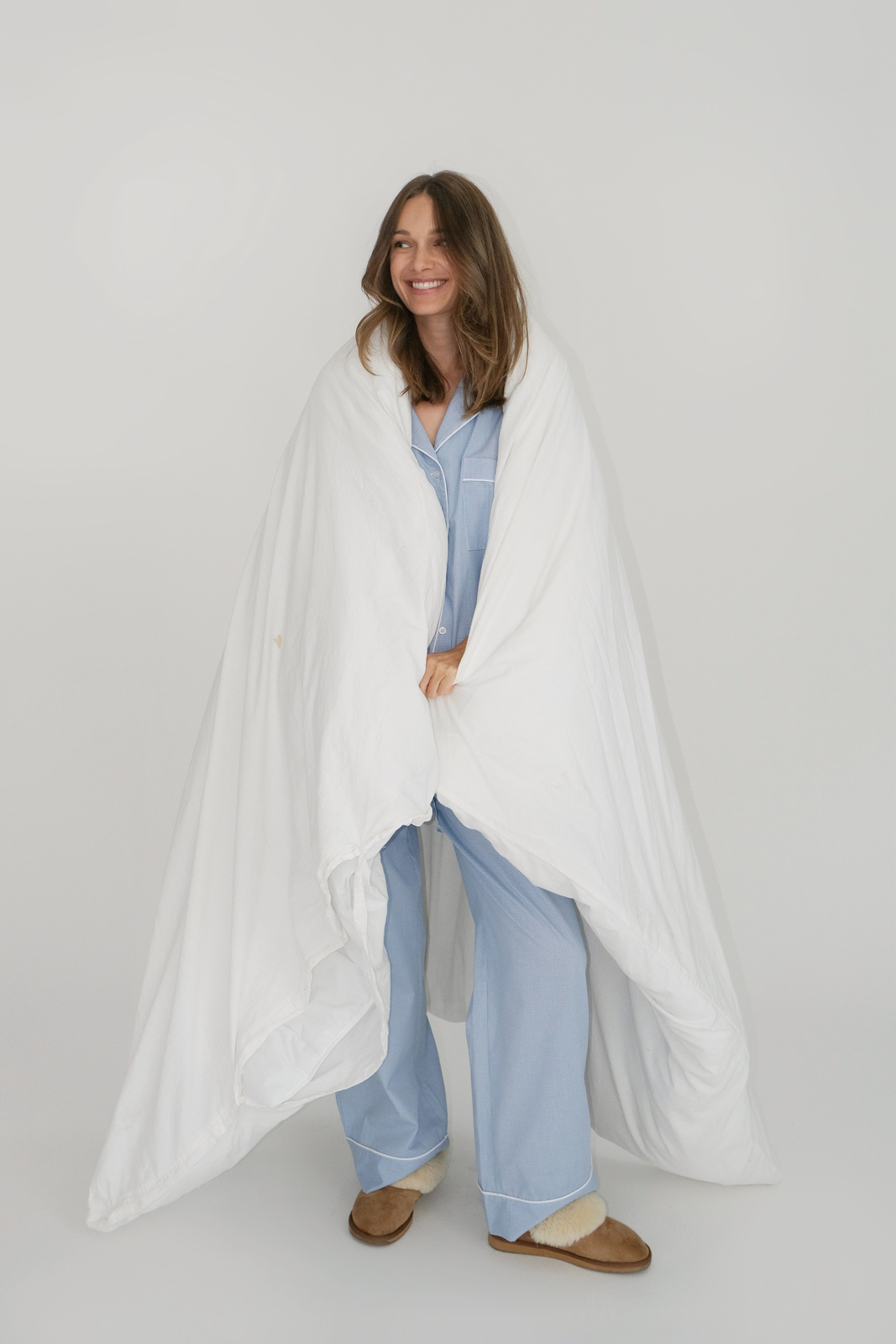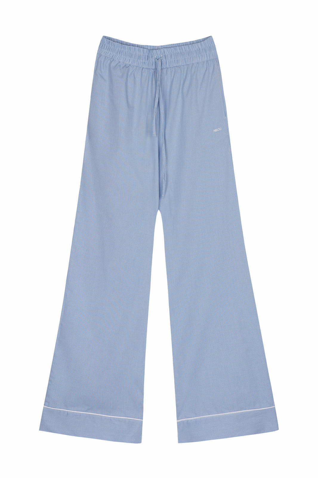 Spodnie piżamowe z szerokimi, prostymi nogawkami, wykonane z wysokogatunkowej bawełny w niebieską kratkę.