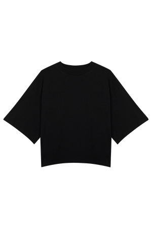 T-Shirt o oversize'owym kroju wykonany z wysokogatunkowej bawełny z domieszką elastanu w kolorze czarnym.