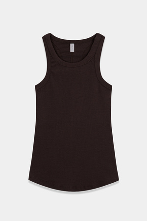 Top o dopasowanym kroju wykonany z wysokogatunkowej, delikatnie prążkowanej bawełny z domieszką elastanu w kolorze czekoladowym.