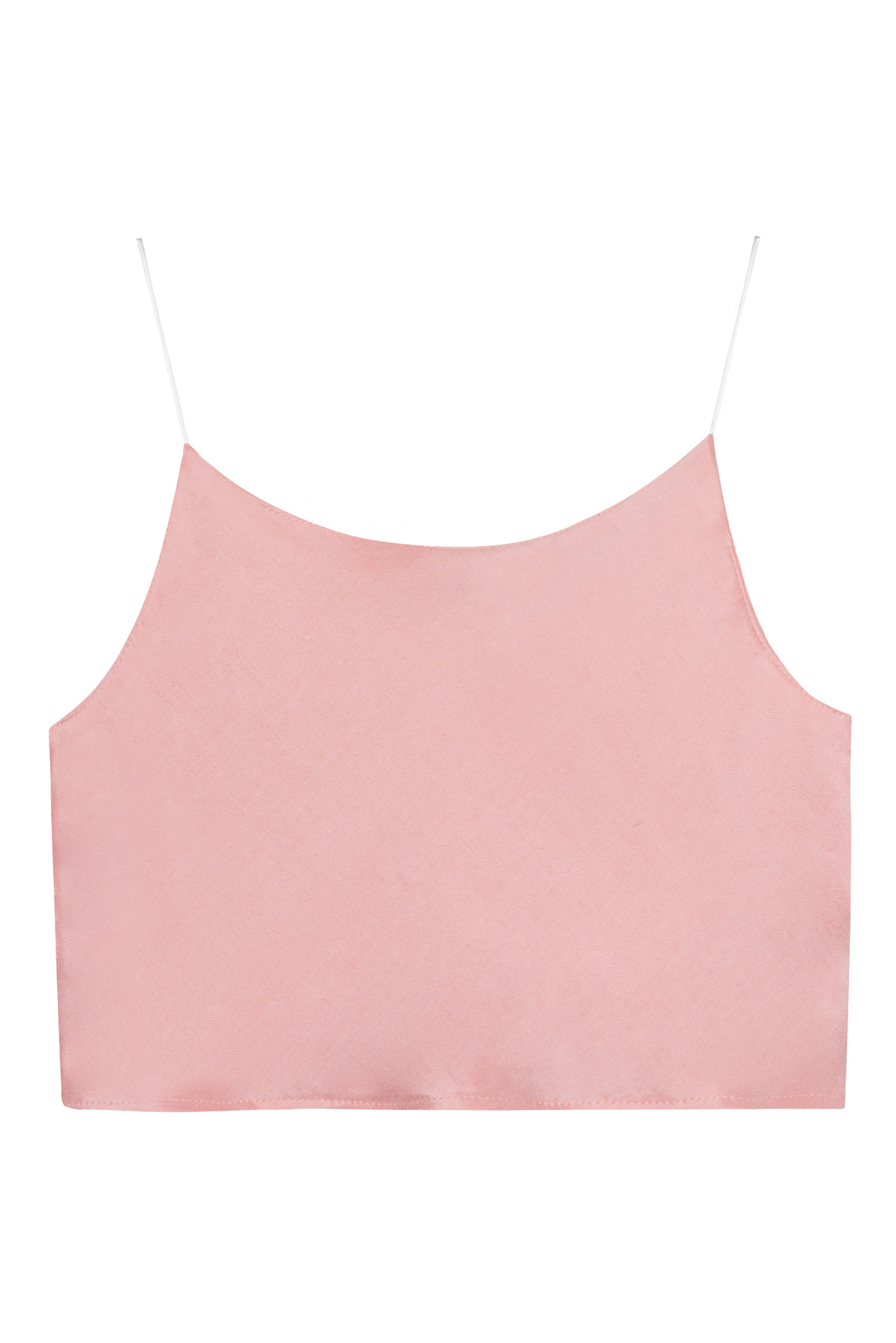Krótki top na ramiączkach, wykonany z wysokogatunkowego materiału o aksamitnym wykończeniu w kolorze różowym.